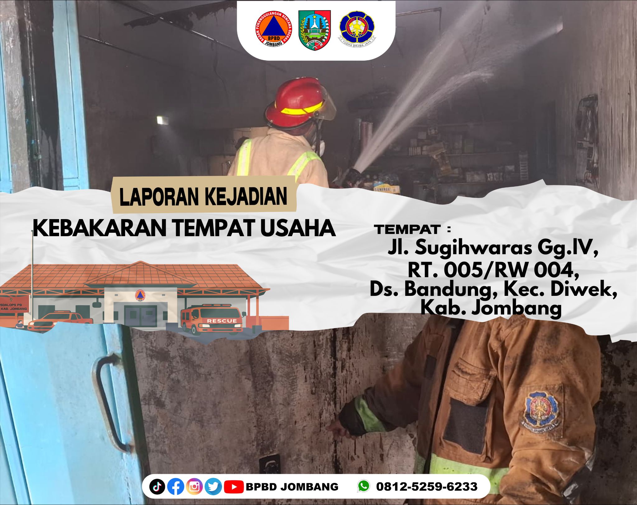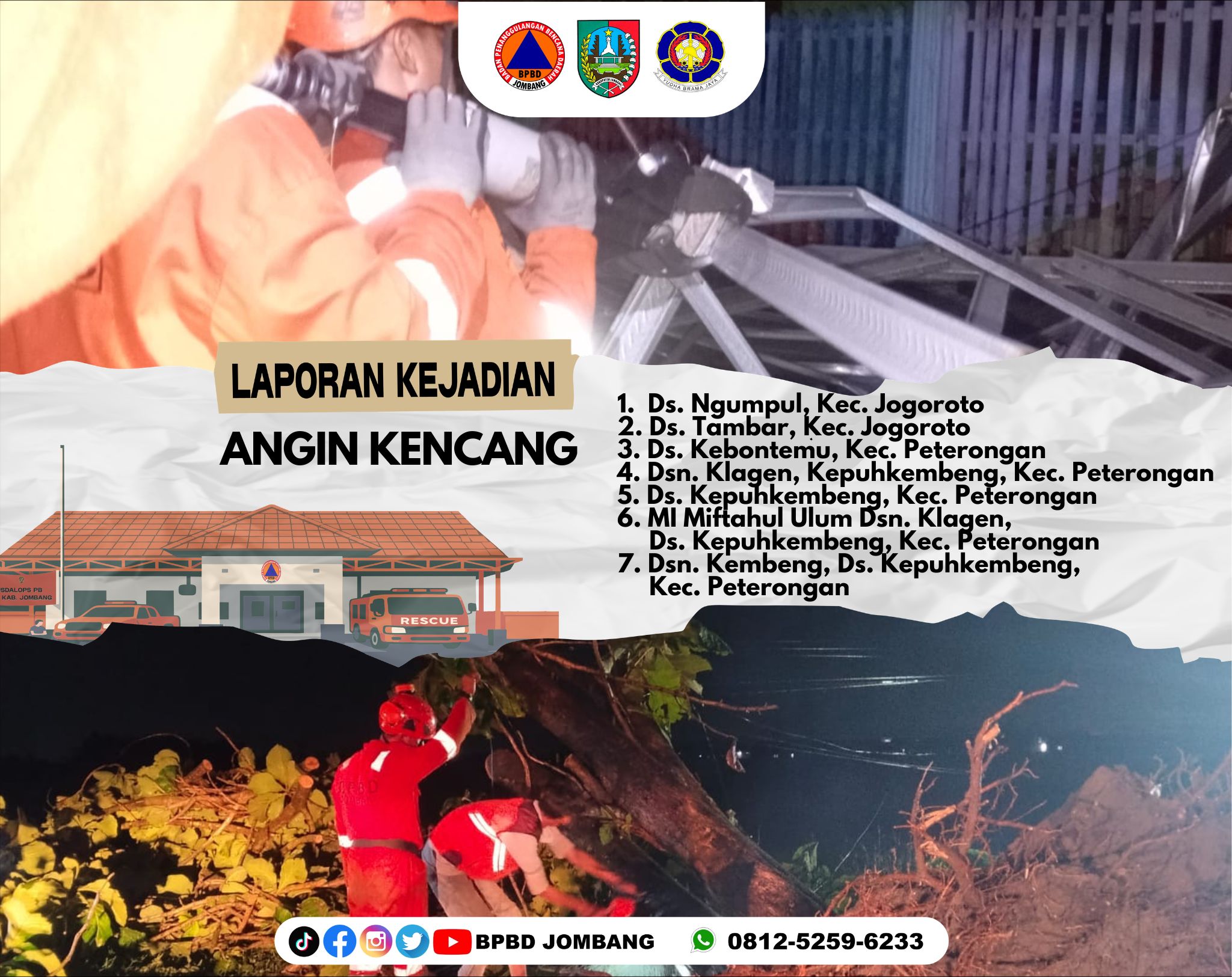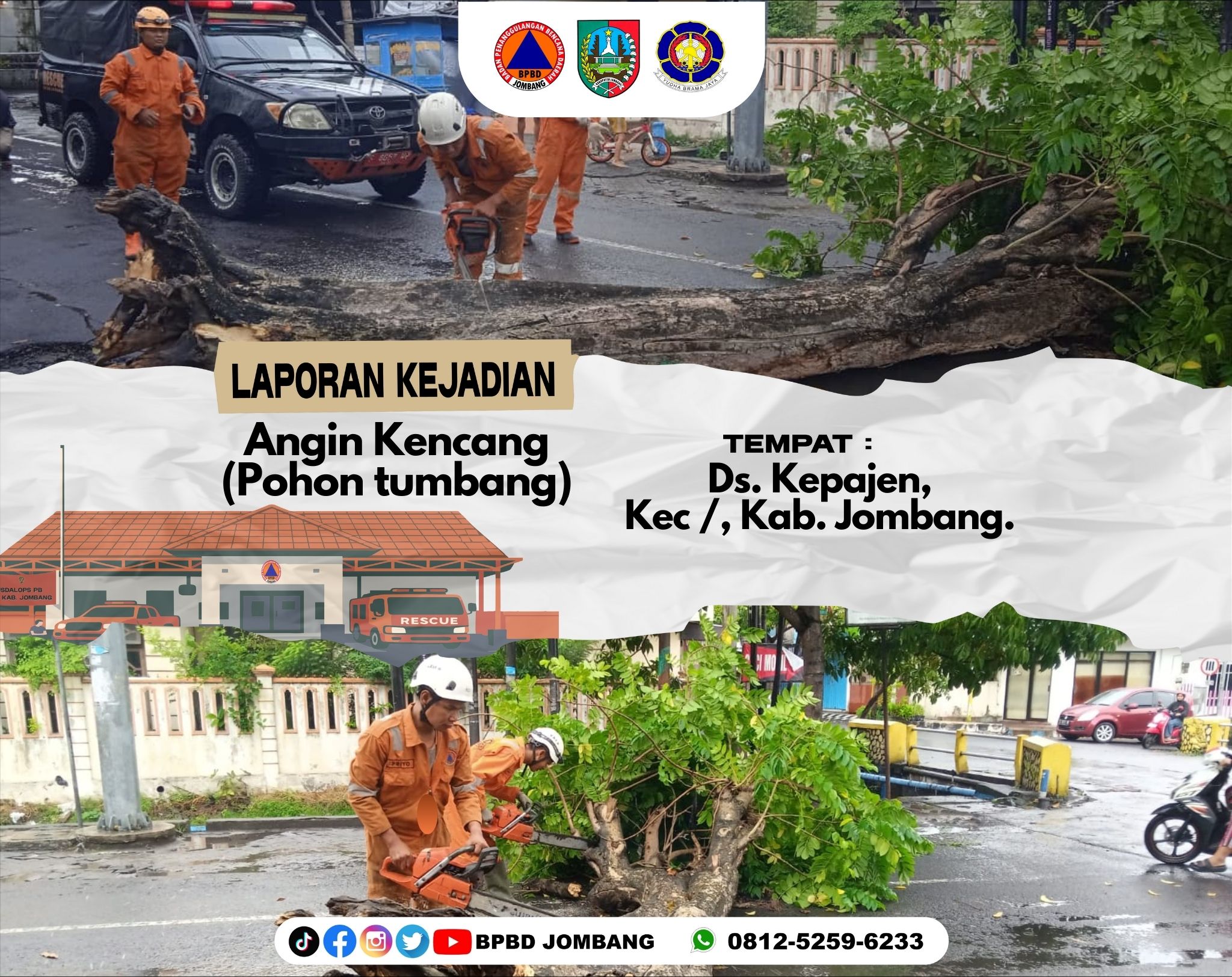 BPBD Kabupaten Jombang Merupakan Salah Satu OPD Yang Berada di Naungan Pemerintahan Kabupaten Jombang, BPBD jombang ber alamat di Jalan KH. Wahid Hasyim No. 141, Kepanjen, Kecamatan Jombang, Kepanjen, Kec. Jombang, Kabupaten Jombang, BPBD Jombang Merupakan OPD yang membidangi kegawat daruratan seperti bencana alam, orang tenggelam, angin kencang dan masih banyak lagi,