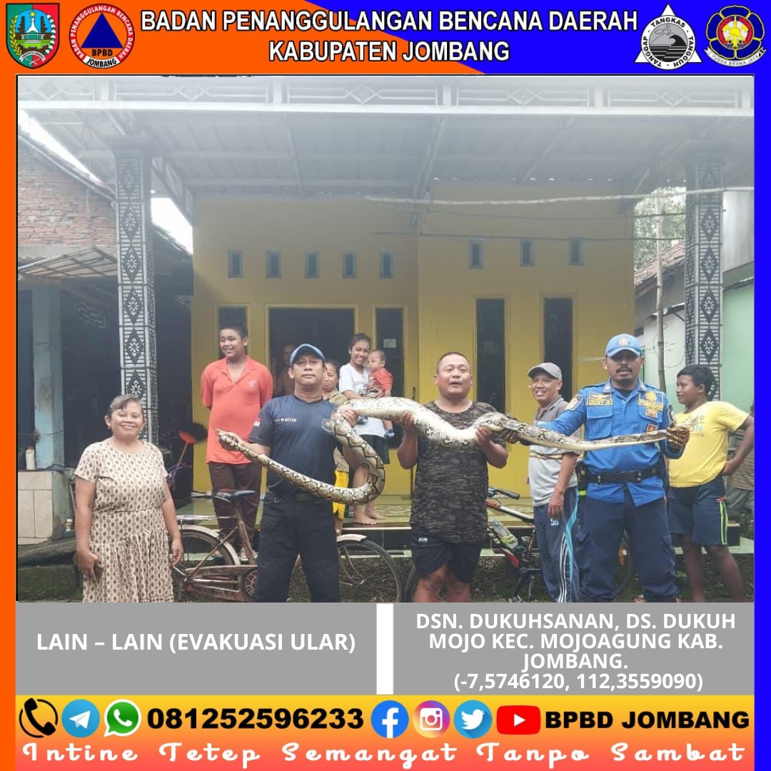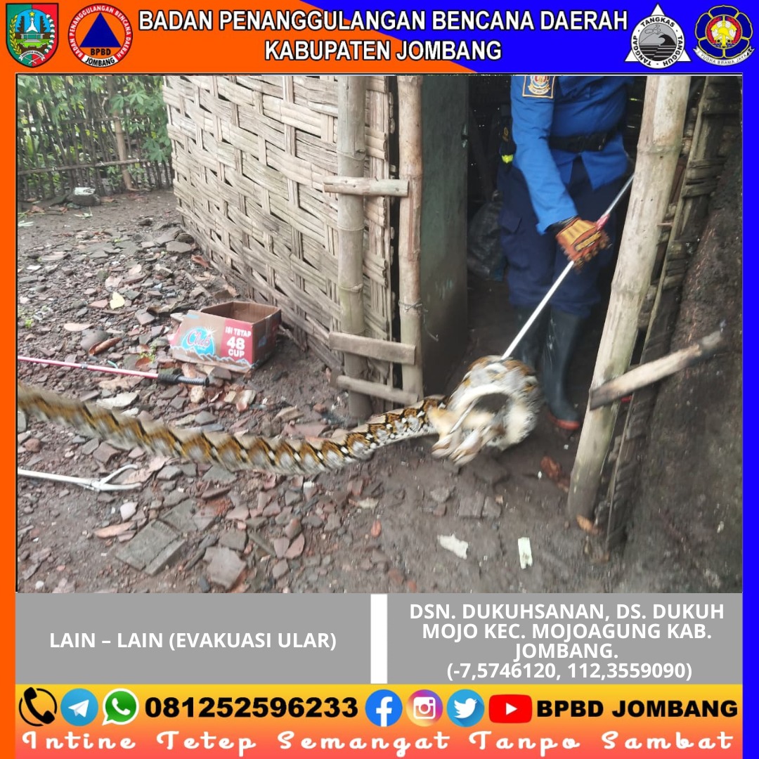 Warga Dusun Dukuhsanan, Desa Dukuhmojo, Kecamatan Mojoagung, Kabupaten Jombang sempat dibuat resah dengan kemunculan seekor ular yang masuk ke area kandang ternak milik salah satu warga. Kejadian ini menimbulkan kekhawatiran karena ular tersebut berpotensi membahayakan keselamatan penghuni rumah sekaligus mengancam hewan ternak yang berada di sekitar lokasi.