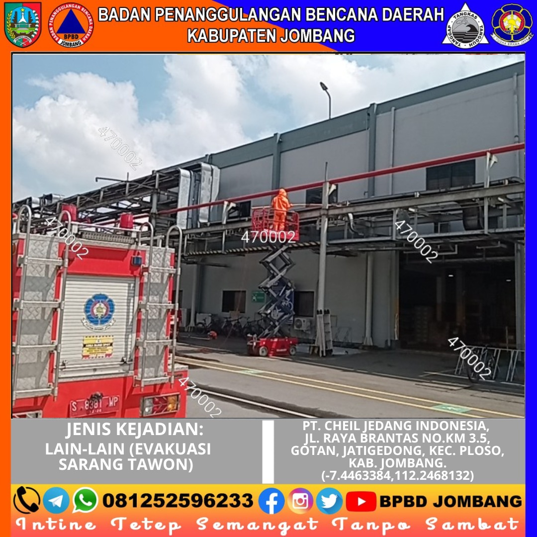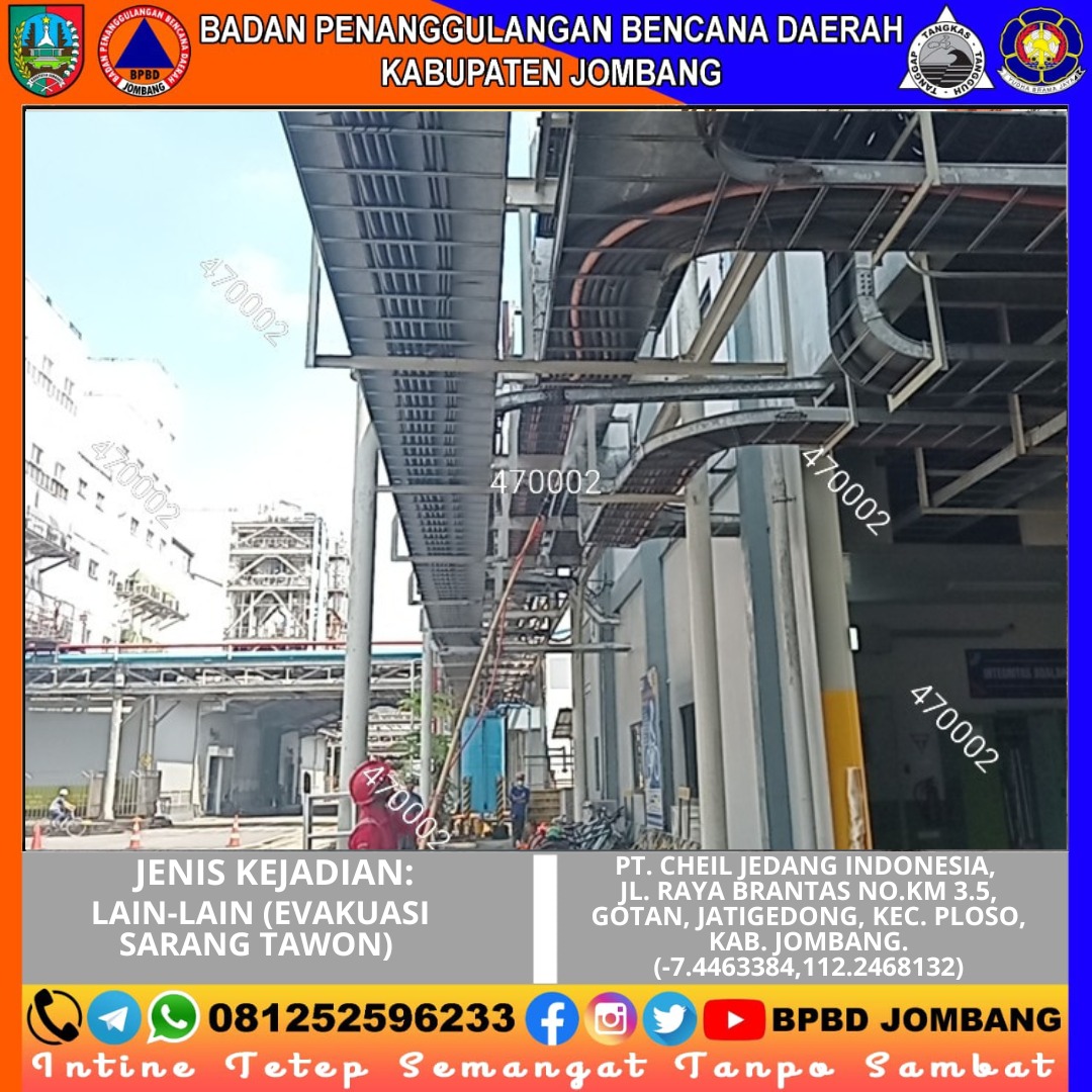 Aktivitas kerja di lingkungan industri sempat diwarnai kekhawatiran setelah ditemukan sarang tawon vespa di area atap gedung pabrik PT. Cheil Jedang Indonesia, Kecamatan Ploso, Kabupaten Jombang. Keberadaan sarang tawon dengan ukuran cukup besar ini dinilai berpotensi membahayakan keselamatan para karyawan, mengingat karakter tawon vespa yang agresif dan dapat menyerang secara berkelompok.