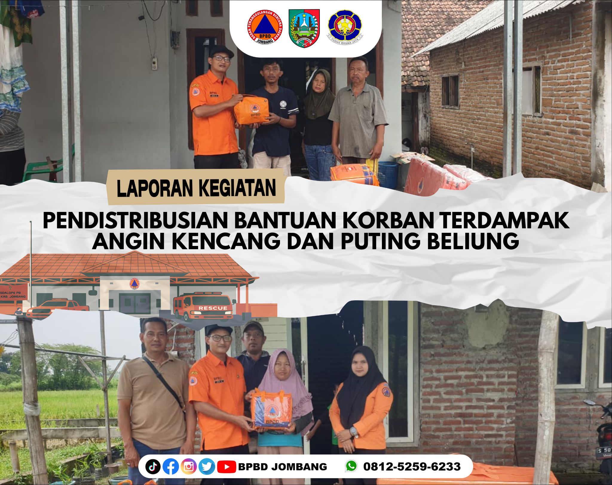 Sebagai bentuk respons cepat dan kepedulian terhadap warga terdampak bencana, tim dari Badan Penanggulangan Bencana Daerah Kabupaten Jombang melaksanakan kegiatan serah terima bantuan stimulan bagi masyarakat yang terdampak angin kencang dan puting beliung pada Selasa, 31 Maret 2026.