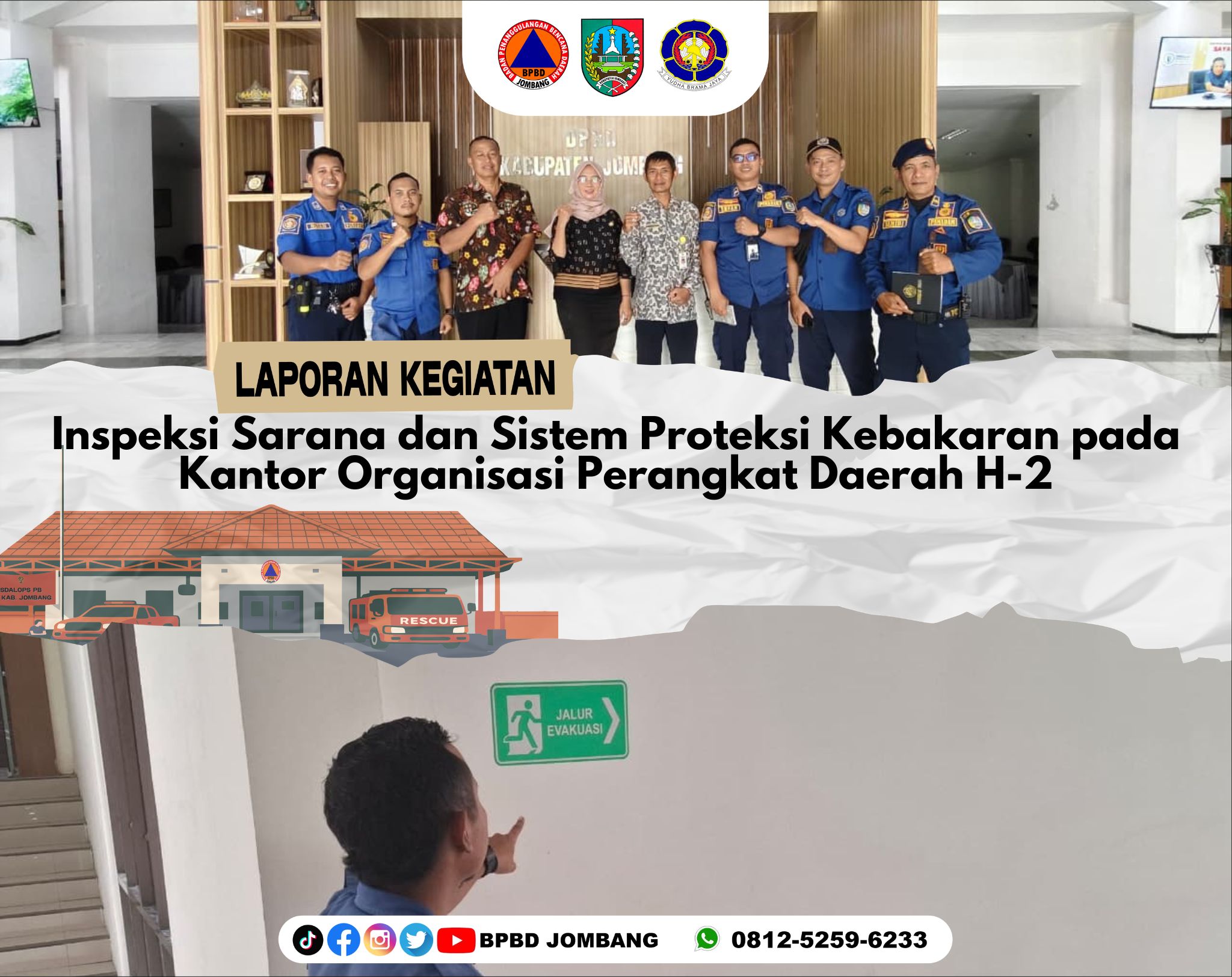 Sebagai bentuk komitmen dalam memperkuat upaya pencegahan kebakaran di lingkungan pemerintahan, Badan Penanggulangan Bencana Daerah Kabupaten Jombang melaksanakan kegiatan Inspeksi Sarana dan Sistem Proteksi Kebakaran pada Kantor Organisasi Perangkat Daerah selama dua hari berturut-turut. Kegiatan ini menjadi langkah strategis dalam memastikan seluruh fasilitas proteksi kebakaran dalam kondisi siap pakai dan berfungsi optimal.