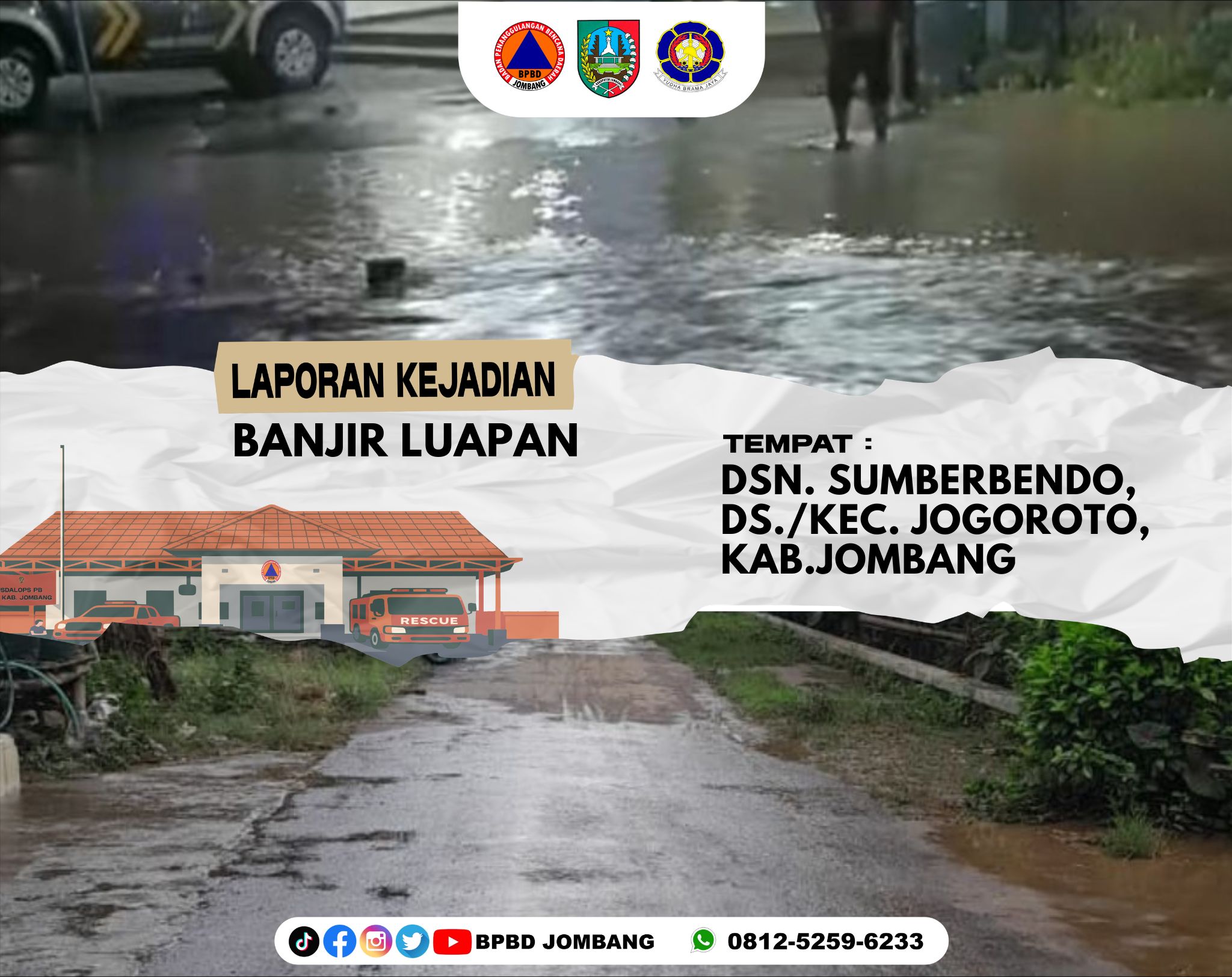 BPBD Kabupaten Jombang mengimbau masyarakat untuk tetap waspada terhadap potensi cuaca ekstrem, terutama saat curah hujan tinggi yang dapat memicu banjir luapan. Masyarakat diharapkan segera melaporkan kepada pihak terkait apabila terjadi peningkatan debit air atau kondisi darurat lainnya agar dapat segera dilakukan penanganan.