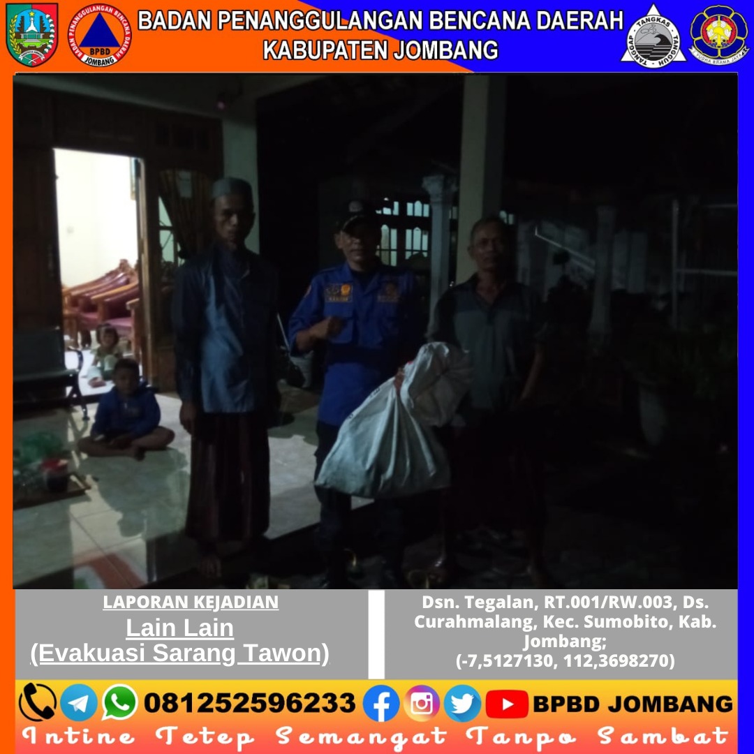 Sarang tawon di atap rumah menjadi lebih besar dan membahayakan pemilik rumah dan warga sekitar. Pemilik rumah melaporkan kepada desa setempat pada hari Jum'at, 29 Desember 2023, Pukul 19.32 WIB. Pihak desa segera membuat surat permohonan untuk ditujukan ke BPBD Kab. Jombang. Pemilik rumah meneruskan surat tersebut ke BPBD Kab. Jombang pada Jum'at, 29 Desember 2023.