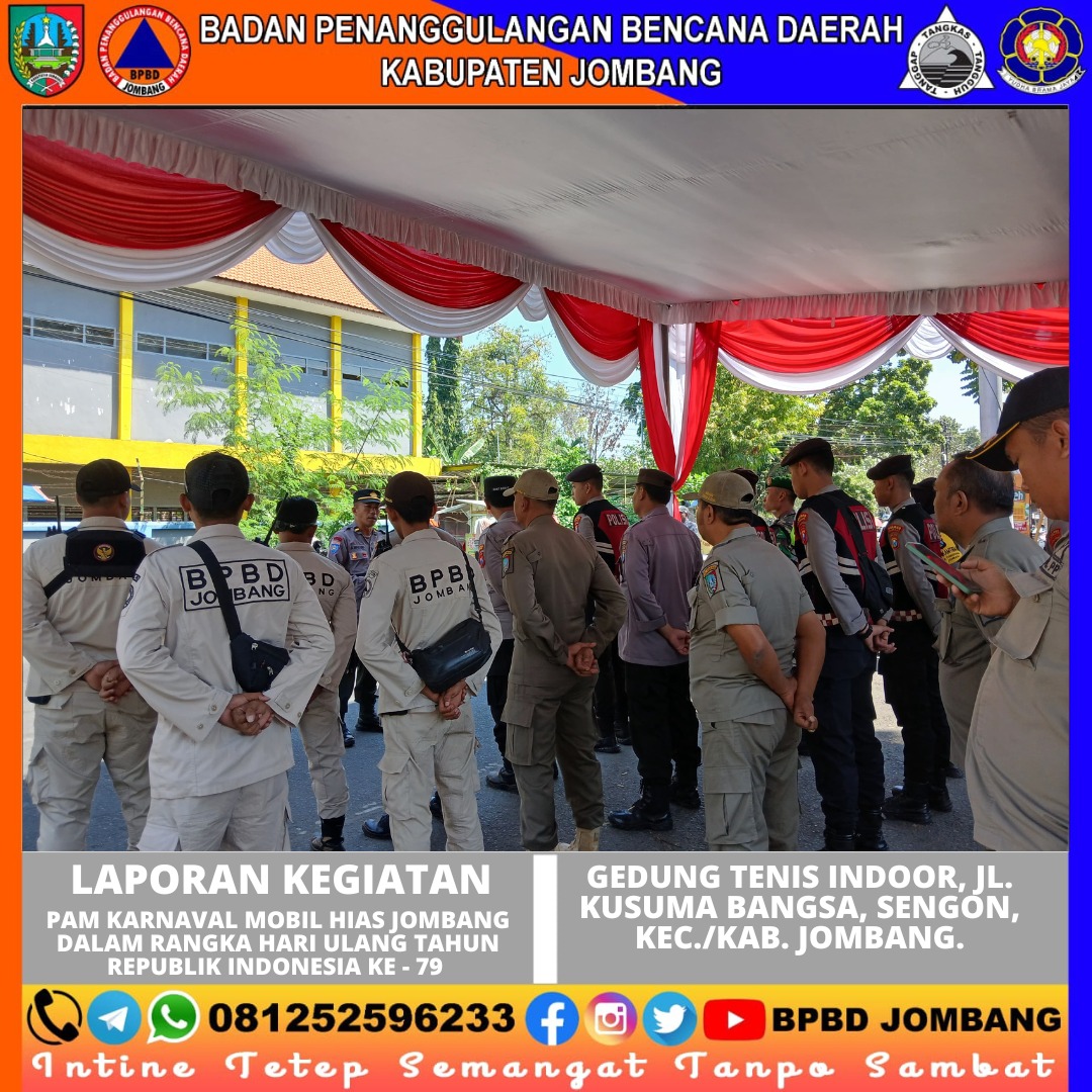 Tim Pusdalops BPBD Kabupaten Jombang melakukan PAM Karnaval Mobil Hias Jombang dalam rangka HUT Republik Indonesia ke-79.