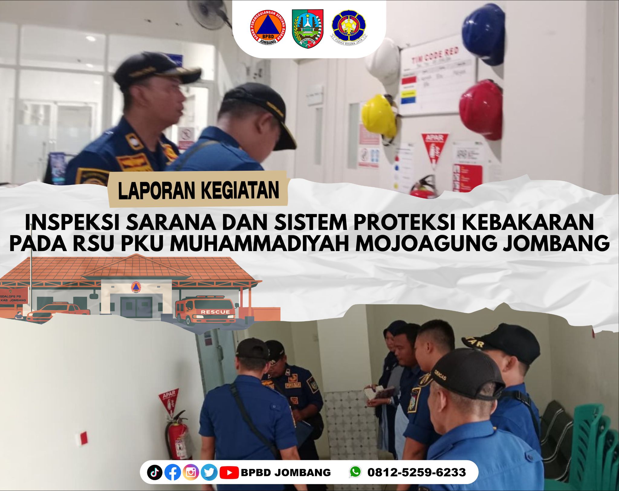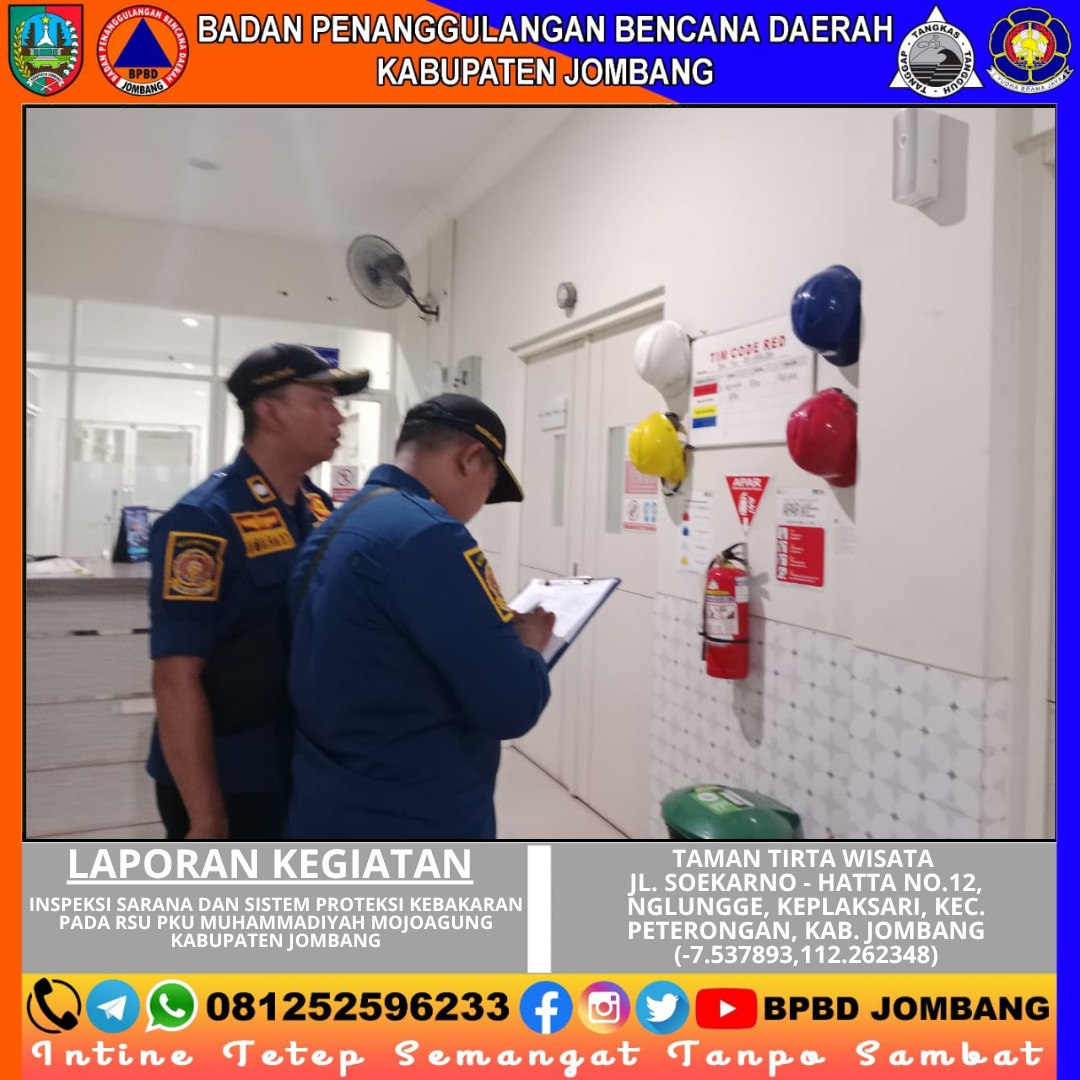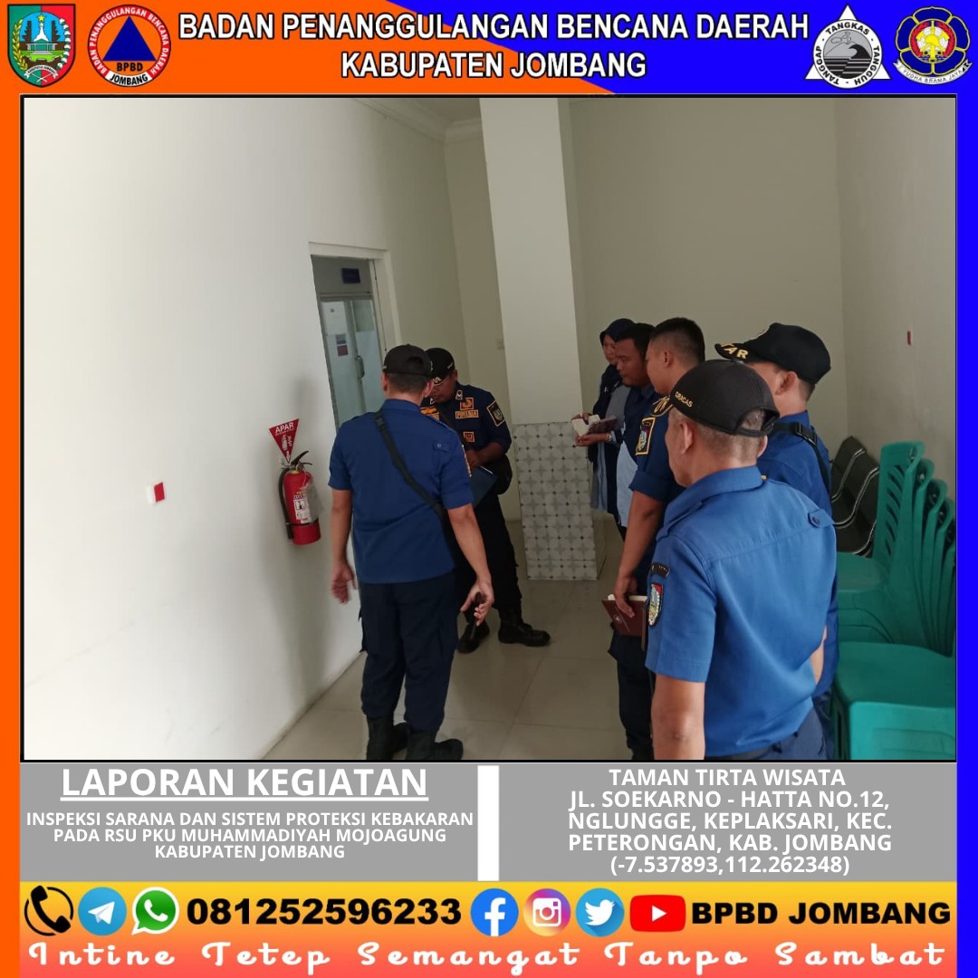 Komitmen dalam menjaga keselamatan fasilitas publik terus ditunjukkan oleh BPBD Kabupaten Jombang melalui kegiatan inspeksi sarana dan sistem proteksi kebakaran di RSU PKU Muhammadiyah Mojoagung, pada Selasa (28/04/2026). Kegiatan ini dilaksanakan mulai pukul 09.00 hingga 13.00 WIB oleh Tim Inspektur Pemadam Kebakaran dan Penyelamatan sebagai langkah preventif dalam meminimalisir risiko kebakaran di lingkungan rumah sakit.