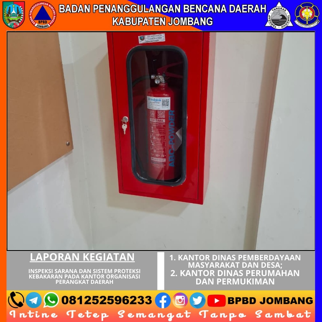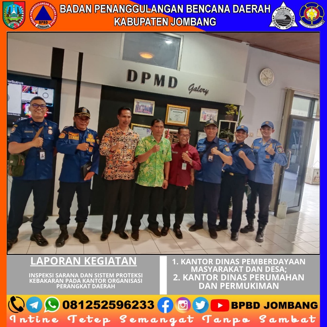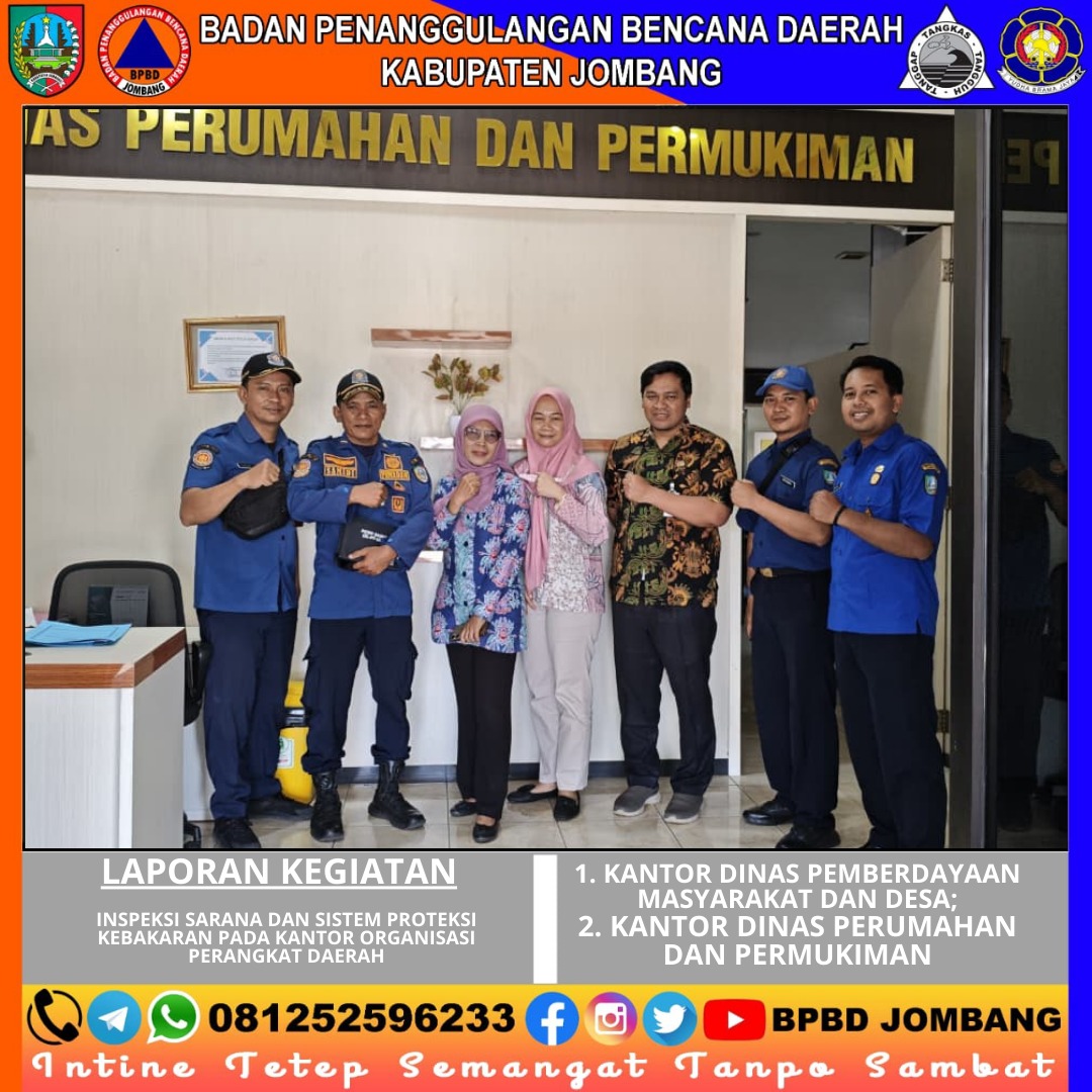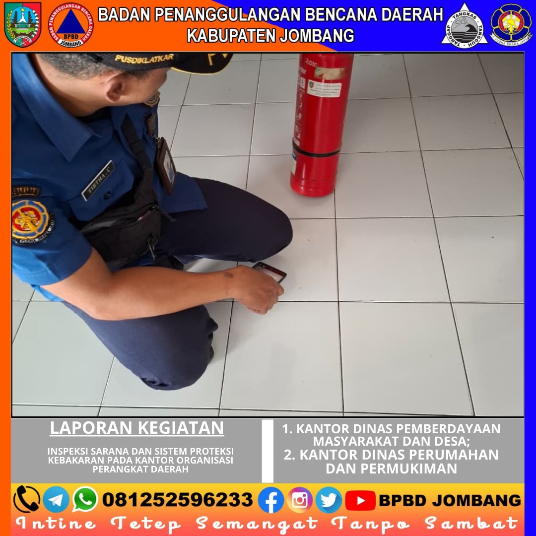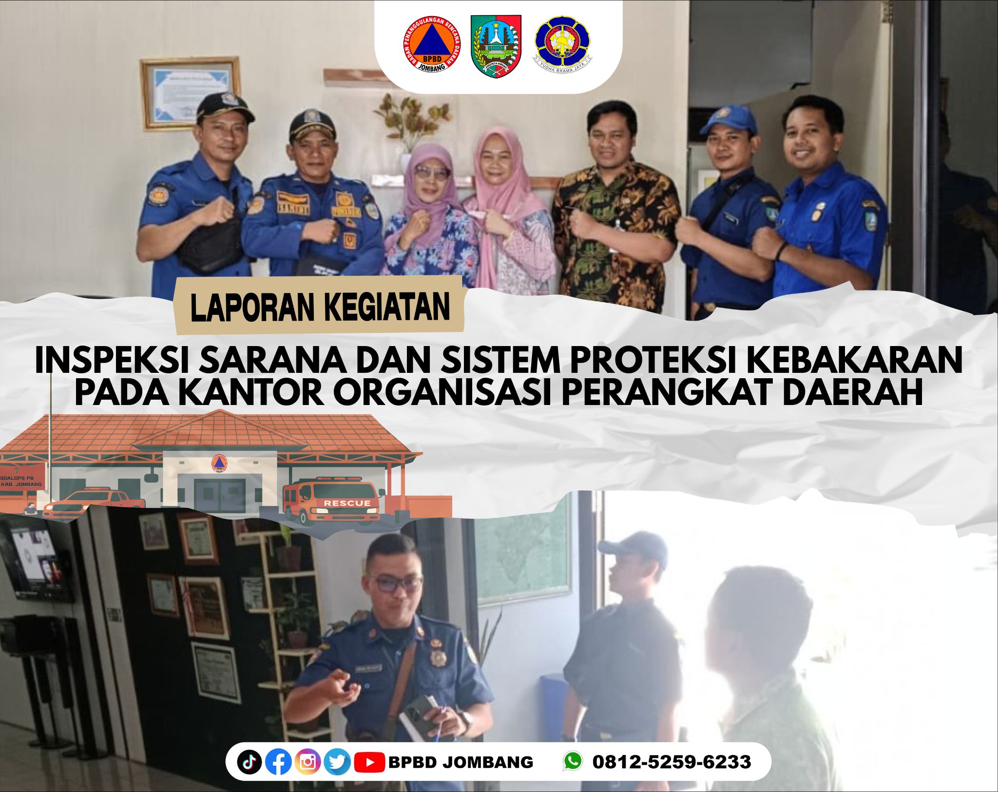 BPBD Kabupaten Jombang melalui Tim Inspektur Pemadam Kebakaran dan Penyelamatan bersama Pos Damkar Jombang melaksanakan kegiatan inspeksi sarana dan sistem proteksi kebakaran pada sejumlah kantor Organisasi Perangkat Daerah (OPD) di lingkungan Pemerintah Kabupaten Jombang, Kamis, 12 Desember 2026 mulai pukul 09.00 WIB.