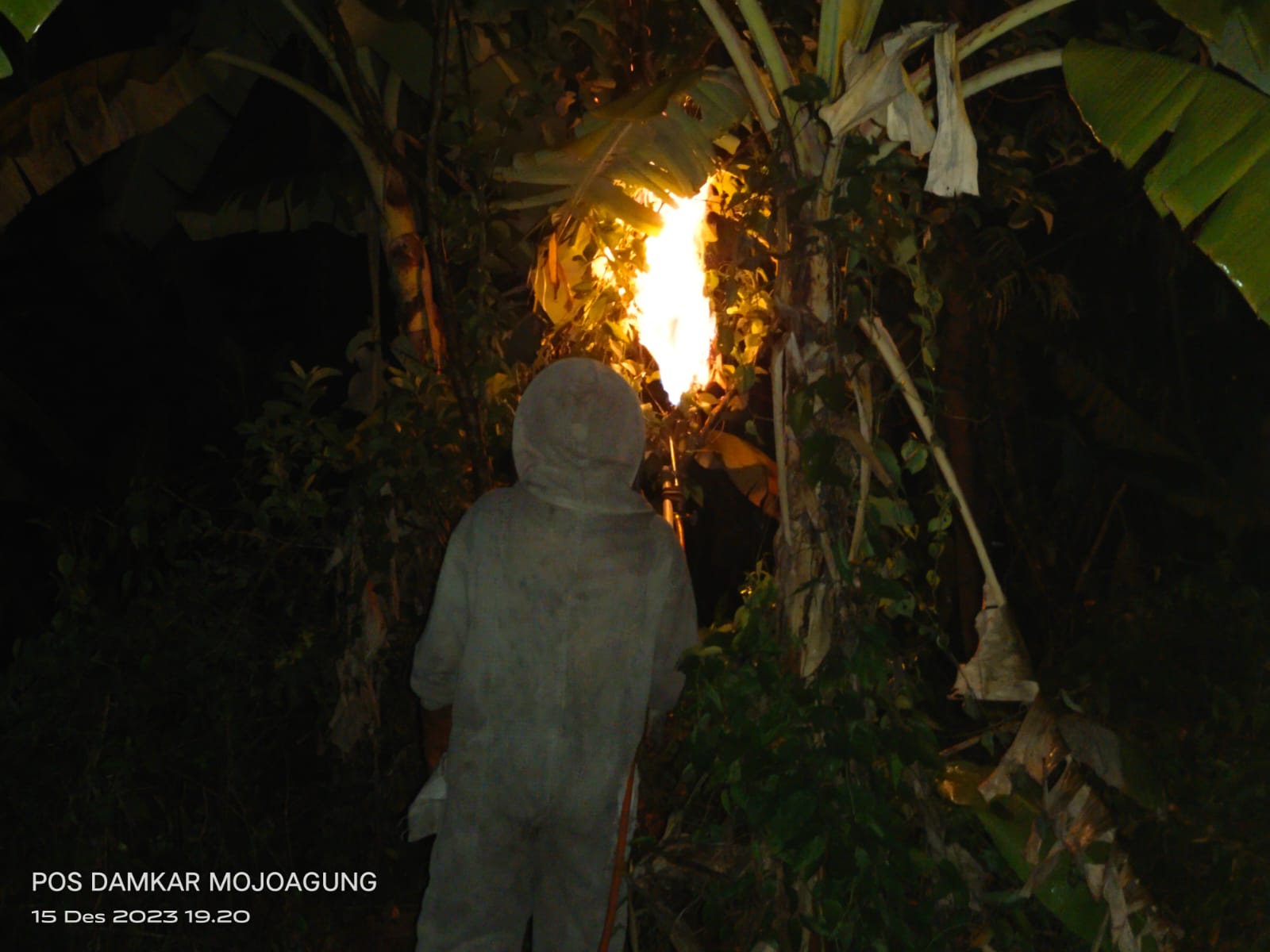 Pemadam Kebakaran Mojoagung Jombang melakukan penanganan pengusiran sarang tawon yang meresahkan warga di tiga tempat terdampak, yaitu Desa Kepuhsari RT.006 RW.003, Desa Gudang RT.005 RW.001, dan Desa Wonoayu RT.003 RW.001, semua terletak di Kecamatan Mojoagung, Kabupaten Jombang. Aktivitas ini dilaksanakan pada Jum'at, 15 Desember 2023, pukul 18.30 WIB.