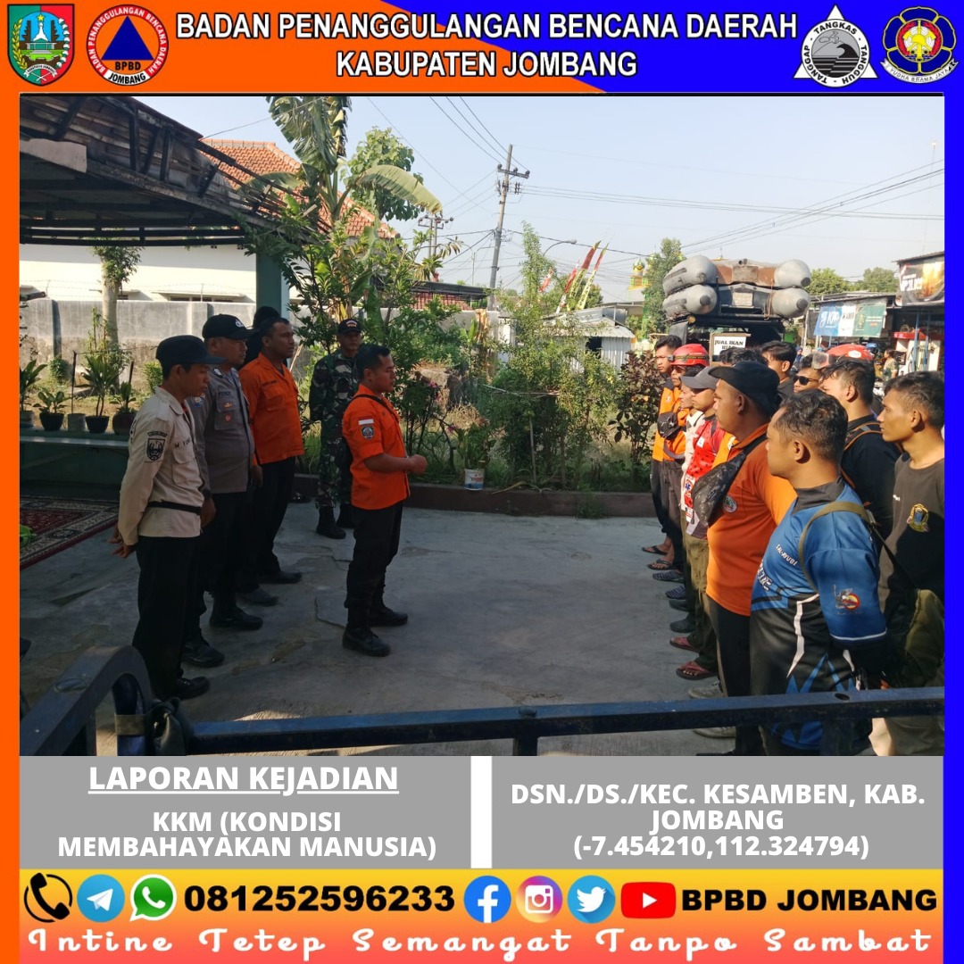 16 September 2024, Pukul 12.50 WIB, Polsek Kecamatan Kesamben melaporkan kejadian ini ke BPBD Kabupaten Jombang dengan tujuan dilakukannya PPE (Pencarian, Pertolongan dan Evakuasi).
