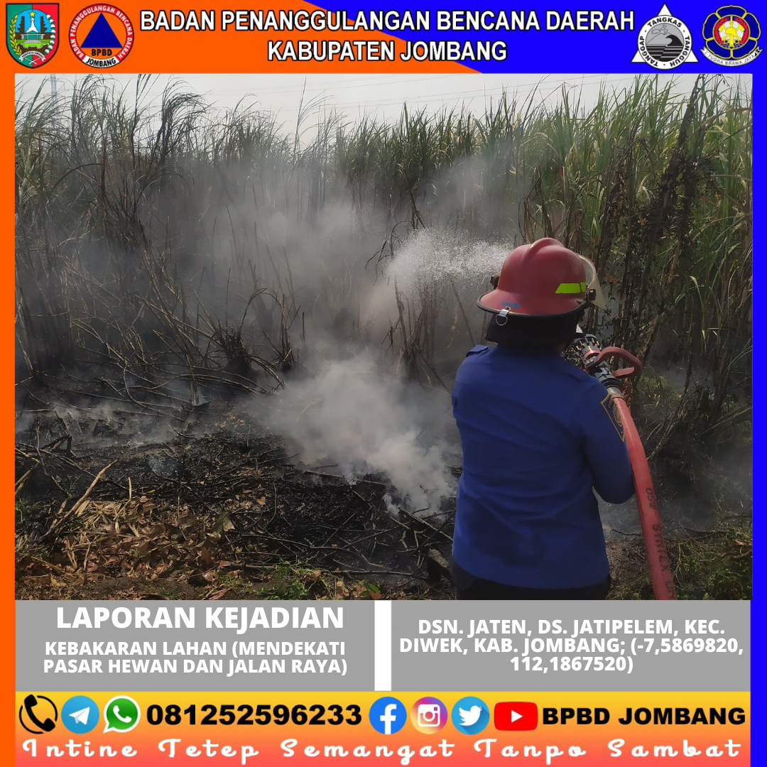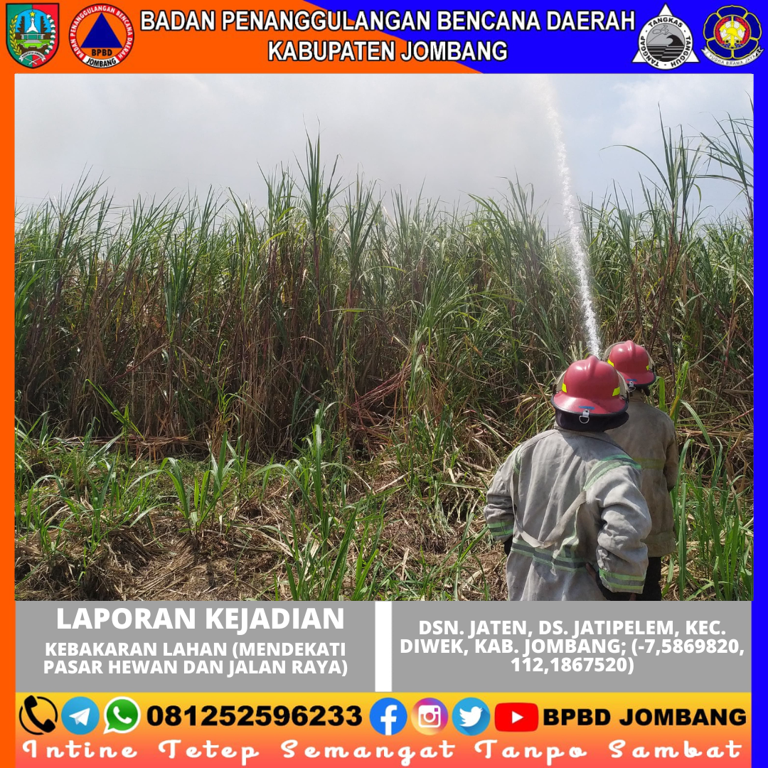 Selasa, 20 Agustus 2024, Sekitar pukul 12.05 WIB adanya laporan warga yang ditujukan untuk Pos Damkar Jombang tentang kejadian kebakaran lahan yang mendekati pemukiman penduduk. Kebakaran tersebut dipicu oleh seorang warga yang membakar sisa sampah tebu (Daduk) yang tidak sengaja tertiup angin sehingga api menjadi besar dan merembet ke lahan disampingnya.