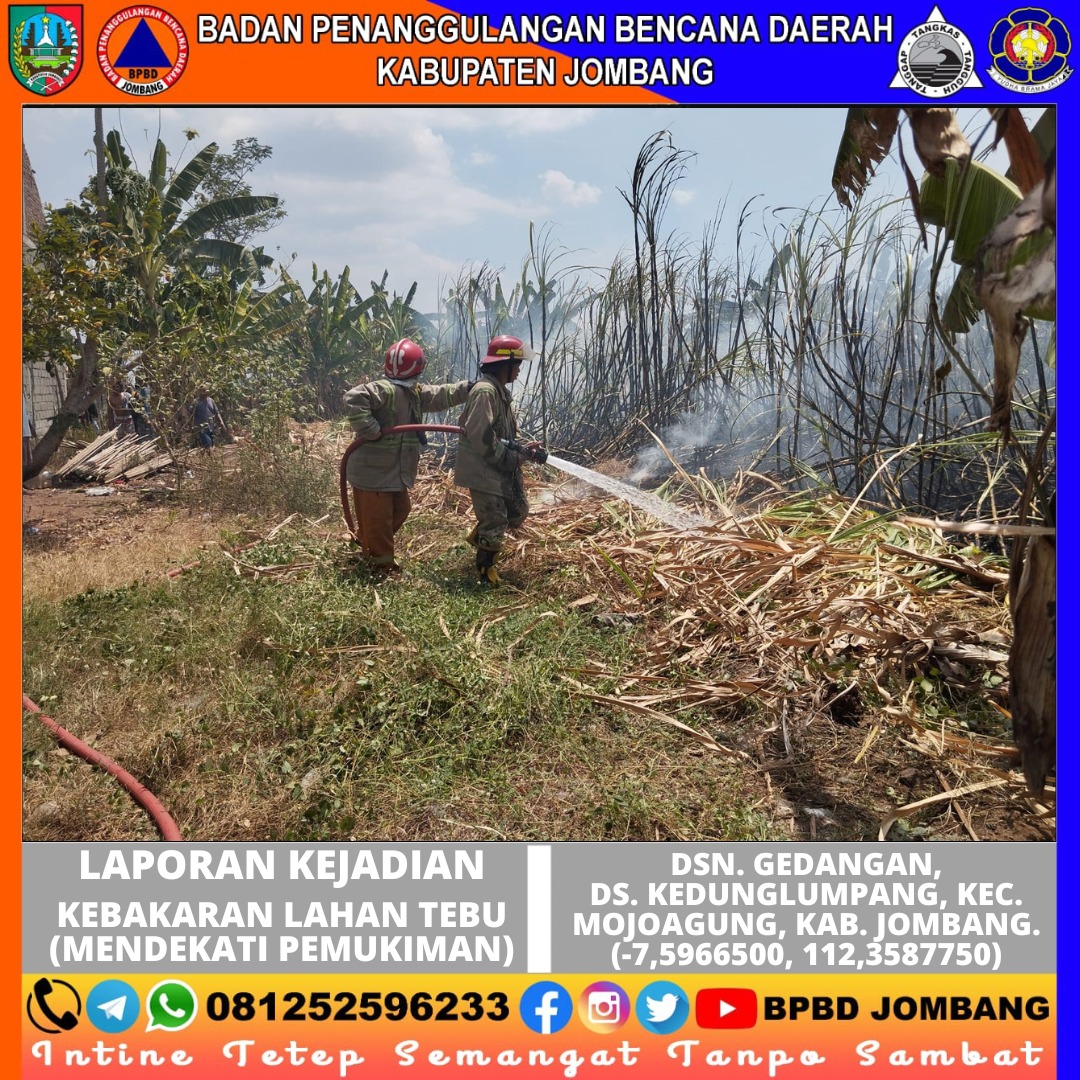 Rabu, 04 September 2024. Awal mula kebakaran terjadi sekitar pukul 12.40 Wib yang disebabkan pembakaran sampah yang merembet ke lahan tebu. Warga yang melihat awal kejadian tersebut mencoba memadamkan dengan alat seadanya. Dirasa api masih berkobar dan sulit dipadamkan, akhirnya warga melaporkan kejadian ini ke Pos Damkar Jombang.
