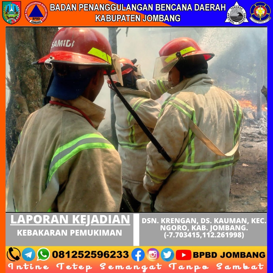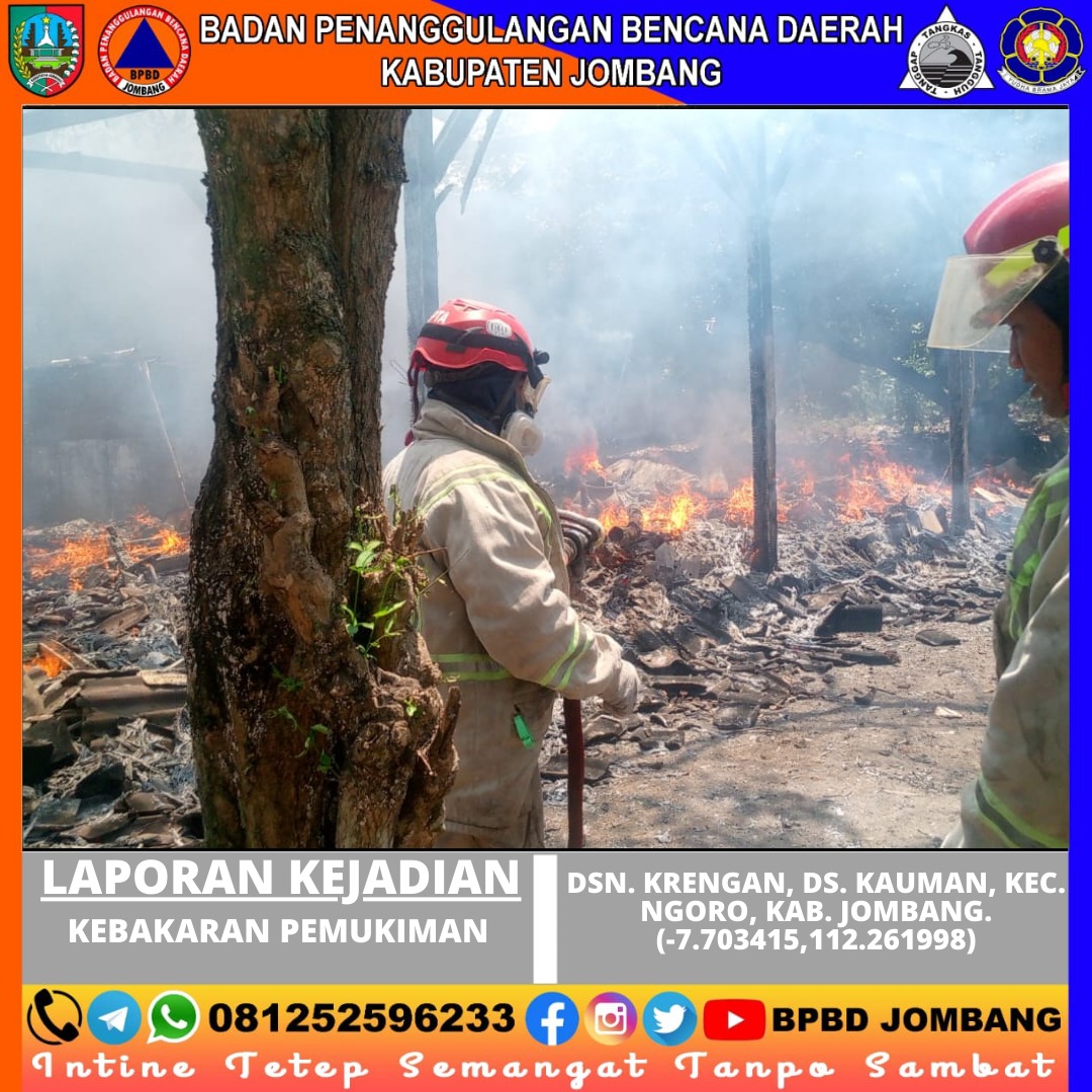 Jombang, - Pada Kamis, 10 Oktober 2024, pukul 09.40 WIB, terjadi kebakaran yang berlokasi di Dsn. Krengan, Ds. Kauman, Kec. Ngoro, Kabupaten Jombang. Kebakaran ini mengakibatkan satu unit rumah seluas 50 m² hangus terbakar.
