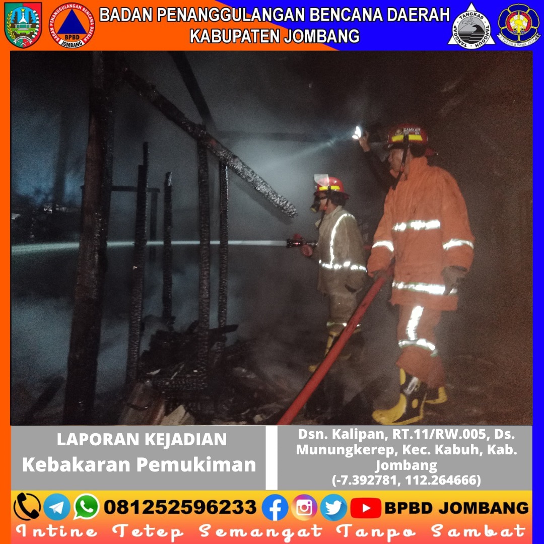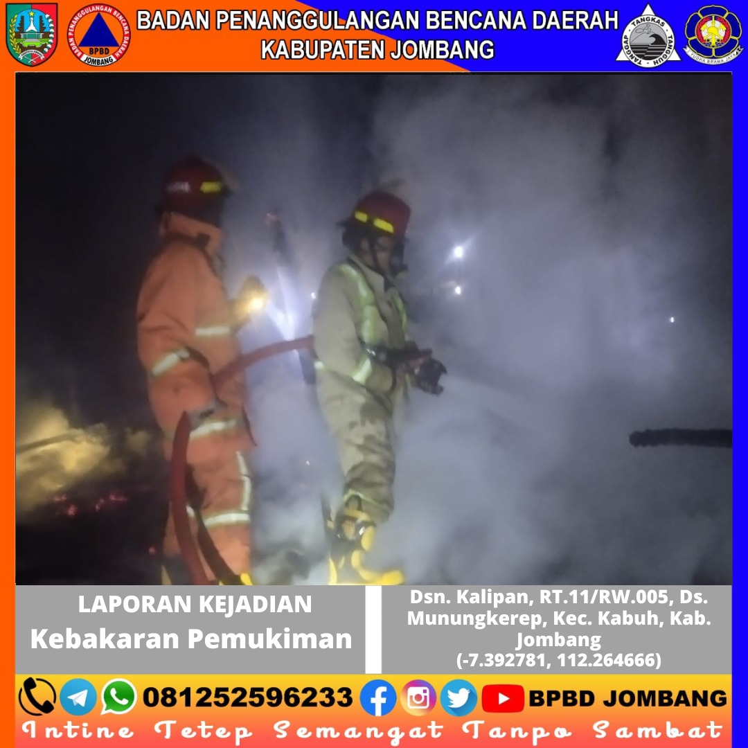 Kebakaran hebat terjadi di Dsn. Kalipan, RT.11/RW.005, Ds. Munungkerep, Kec. Kabuh, Kab. Jombang