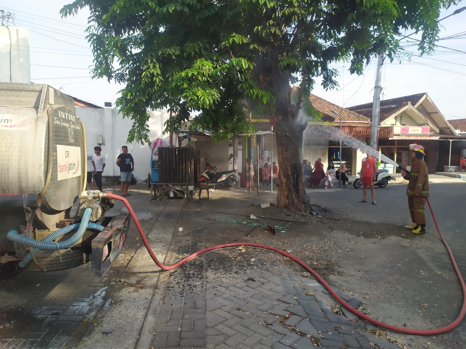 Pemadam Kebakaran Jombang melakukan penanganan kebakaran pohon yang berdampak hampir mendekati pemukiman di Jl. Martadinata Ds. Kepatihan, Kec. Jombang, Kab. Jombang. Aktivitas ini dilaksanakan pada Sabtu, Minggu, 17 Desember 2023, Pukul 15.33 WIB.