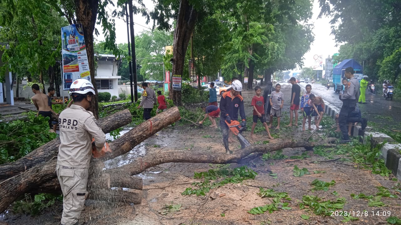 BPBD Kabupaten Jombang melakukan penanganan pohon tumbang di Desa Nglungge, Dusun Keplaksari, Kecamatan Peterongan, Kabupaten Jombang, pada Jumat, 8 Desember 2023, pukul 13.30 WIB. Pohon tersebut jatuh akibat angin kencang dan hujan lebat. Dampaknya, pohon tumbang menutup seluruh badan jalan.