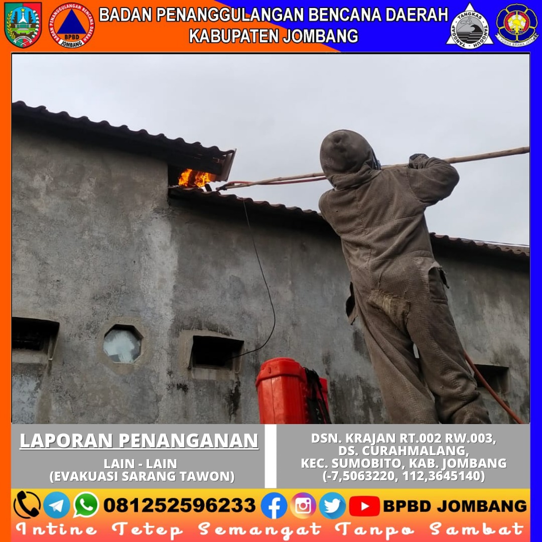 Menanggapi laporan tersebut, Kepala Desa Curahmalang segera mengambil langkah cepat dengan melaporkan kejadian ini kepada Pos Pemadam Kebakaran Jombang. “Kami menerima laporan dari warga dan langsung berkoordinasi dengan pihak Damkar untuk segera menangani situasi ini, karena keberadaan sarang tawon sangat membahayakan penghuni rumah dan warga sekitar,” ungkap Kepala Desa Curahmalang.