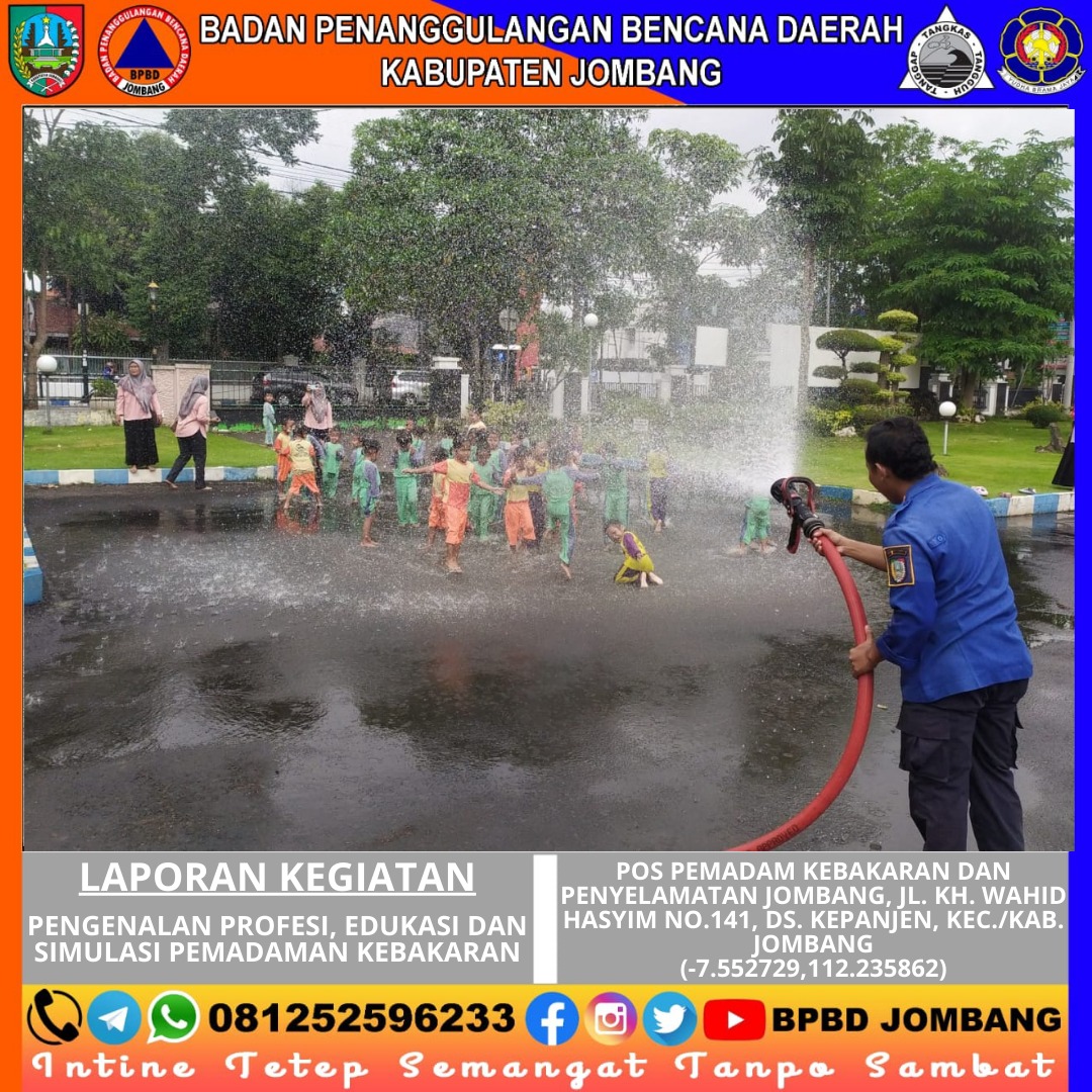 Kegiatan ini diinisiasi oleh Tim Pemadam Kebakaran Kabupaten Jombang dengan tujuan memberikan wawasan tentang mitigasi kebakaran, alat-alat pemadam, serta profesi pemadam kebakaran kepada anak-anak usia dini.