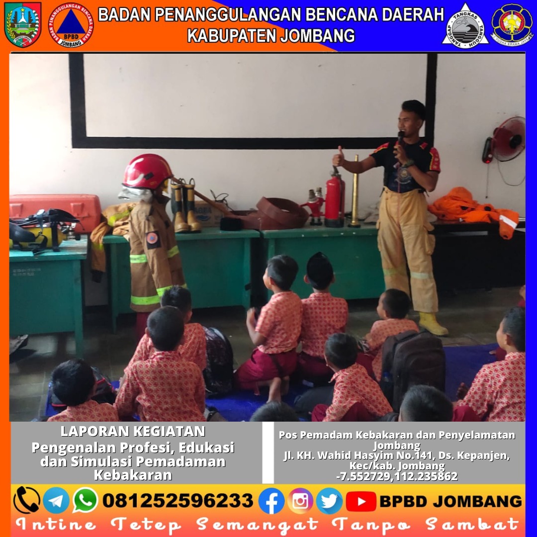 Pengenalan Profesi, Edukasi dan Simulasi Pemadaman Kebakaran di SDN Keras 2, Dsn. Kawur, Ds. Keras, Kec. Diwek, Kab. Jombang