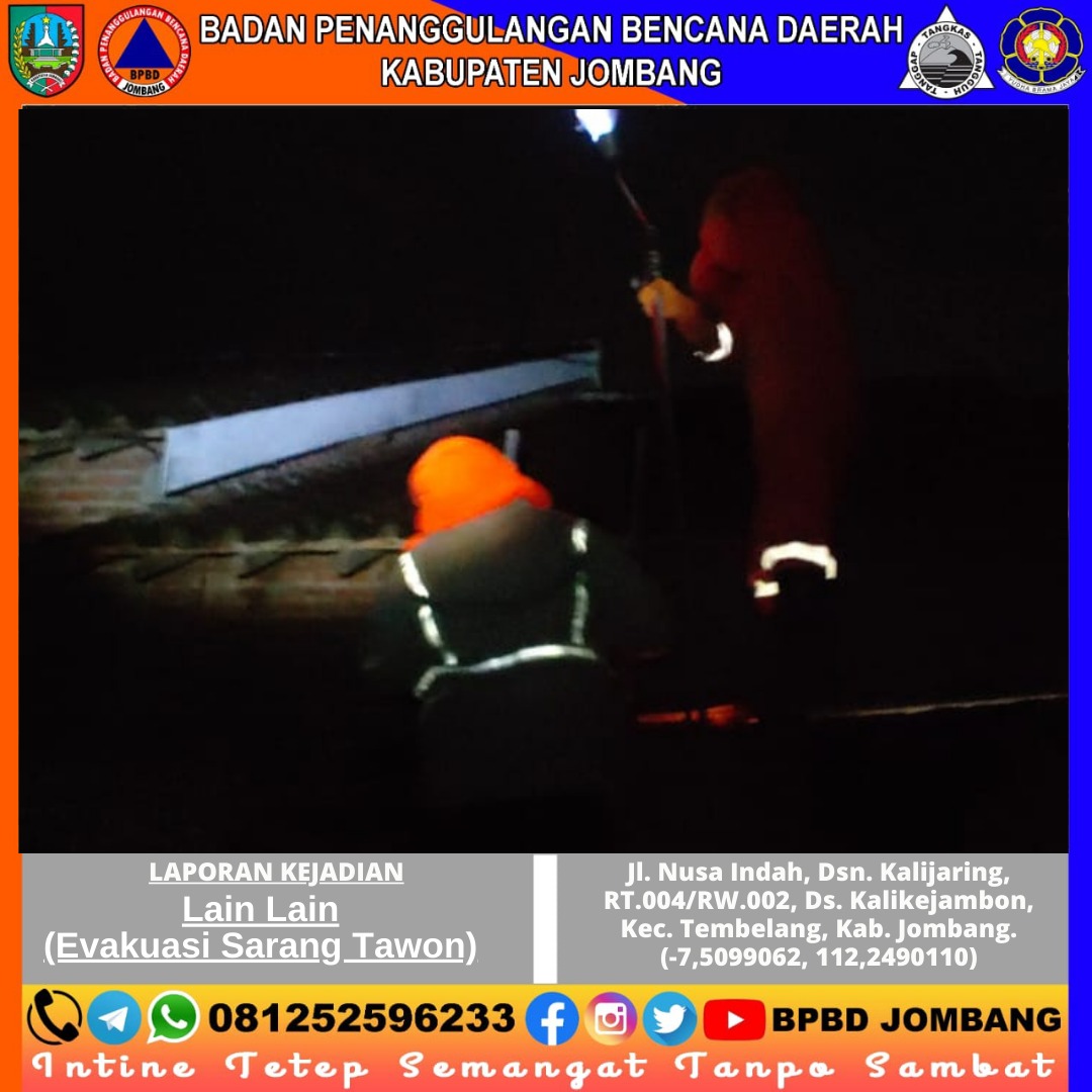 Sarang tawon di atap rumah menjadi lebih besar dan membahayakan pemilik rumah dan warga sekitar. Pemilik rumah melaporkan kepada desa setempat pada hari Jum'at, 29 Desember 2023, Pukul 21.25 WIB. Pihak desa segera membuat surat permohonan untuk ditujukan ke BPBD Kab. Jombang. Pemilik rumah meneruskan surat tersebut ke BPBD Kab. Jombang pada Jum'at, 29 Desember 2023