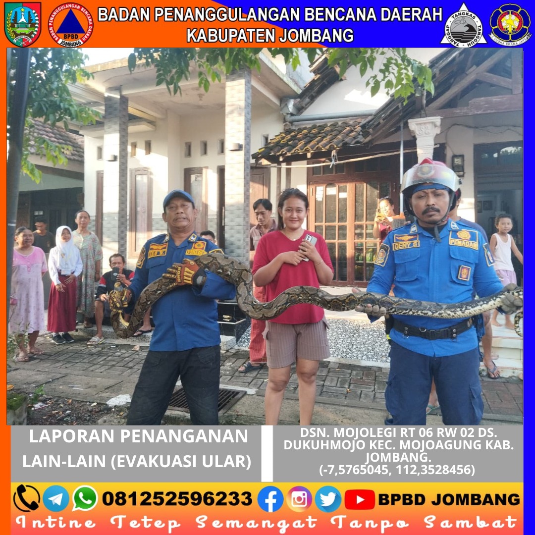 Kejadian tak terduga kembali terjadi di permukiman warga Dusun Mojolegi, Desa Dukuhmojo, Kecamatan Mojoagung, Kabupaten Jombang, pada Senin pagi, 13 April 2026. Seekor ular yang masuk ke dalam kandang ternak milik warga sempat menimbulkan kepanikan karena berpotensi membahayakan penghuni rumah dan hewan ternak.