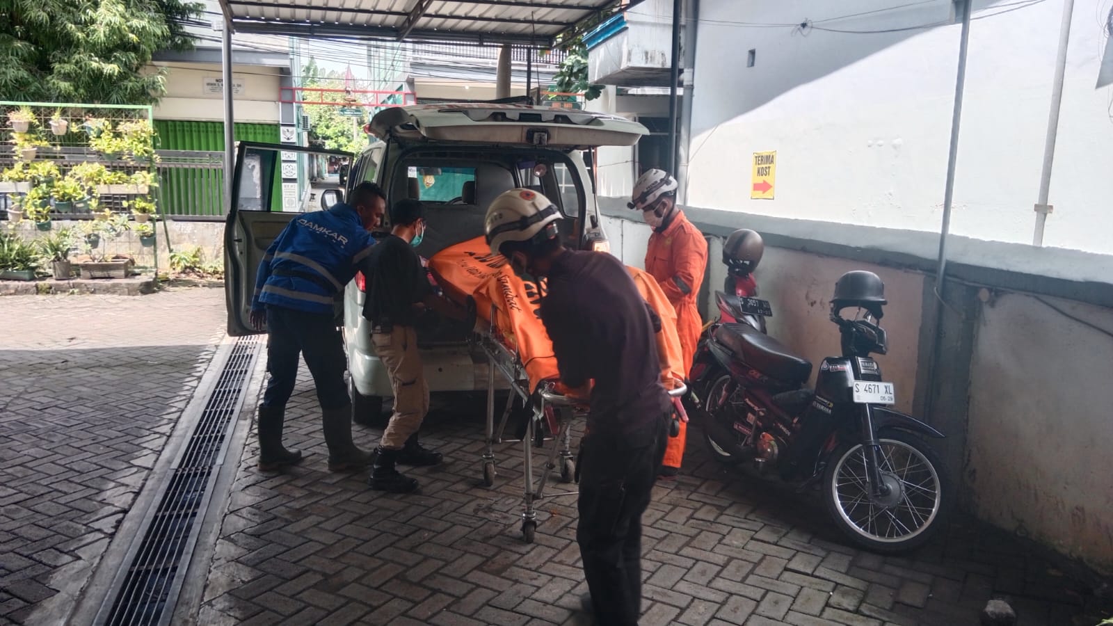 Tim kemudian diberangkatkan menuju lokasi dengan membawa satu unit mobil jenazah lengkap dengan peralatan pendukung serta satu unit sepeda motor trail guna menunjang mobilitas personel di sekitar tanggul dan akses jalan yang terbatas. Setibanya di lokasi, petugas terlebih dahulu melakukan asesmen cepat untuk menentukan metode evakuasi yang aman dan efektif.