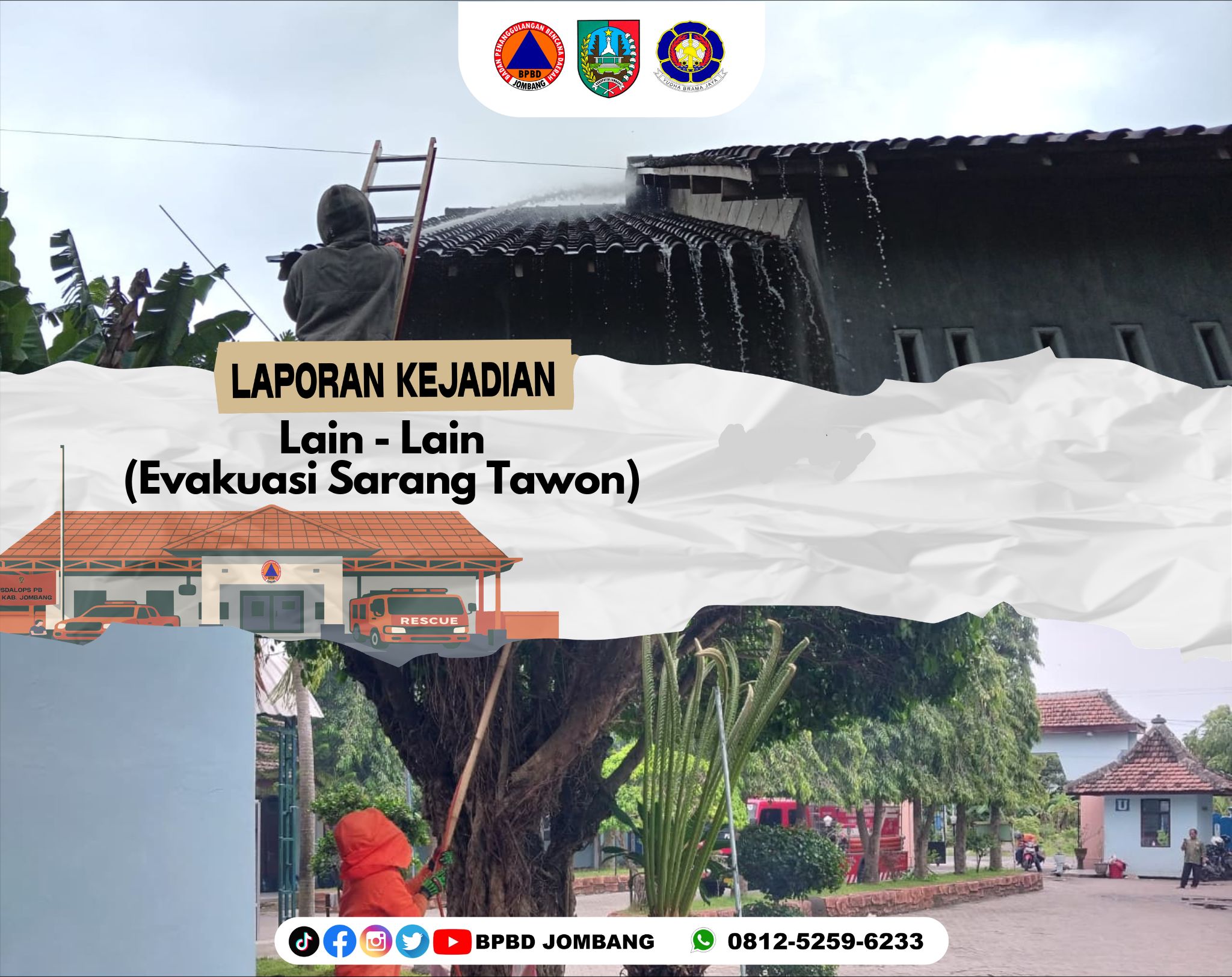 Kesiapsiagaan dan respons cepat kembali ditunjukkan oleh jajaran pemadam kebakaran dan penyelamat di bawah koordinasi Badan Penanggulangan Bencana Daerah Kabupaten Jombang dalam menangani sejumlah laporan evakuasi sarang tawon di berbagai wilayah Kabupaten Jombang pada Rabu, 18 Februari 2026.