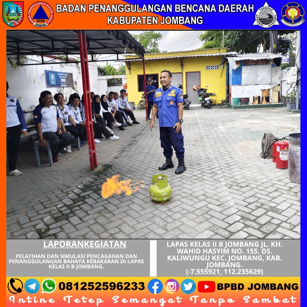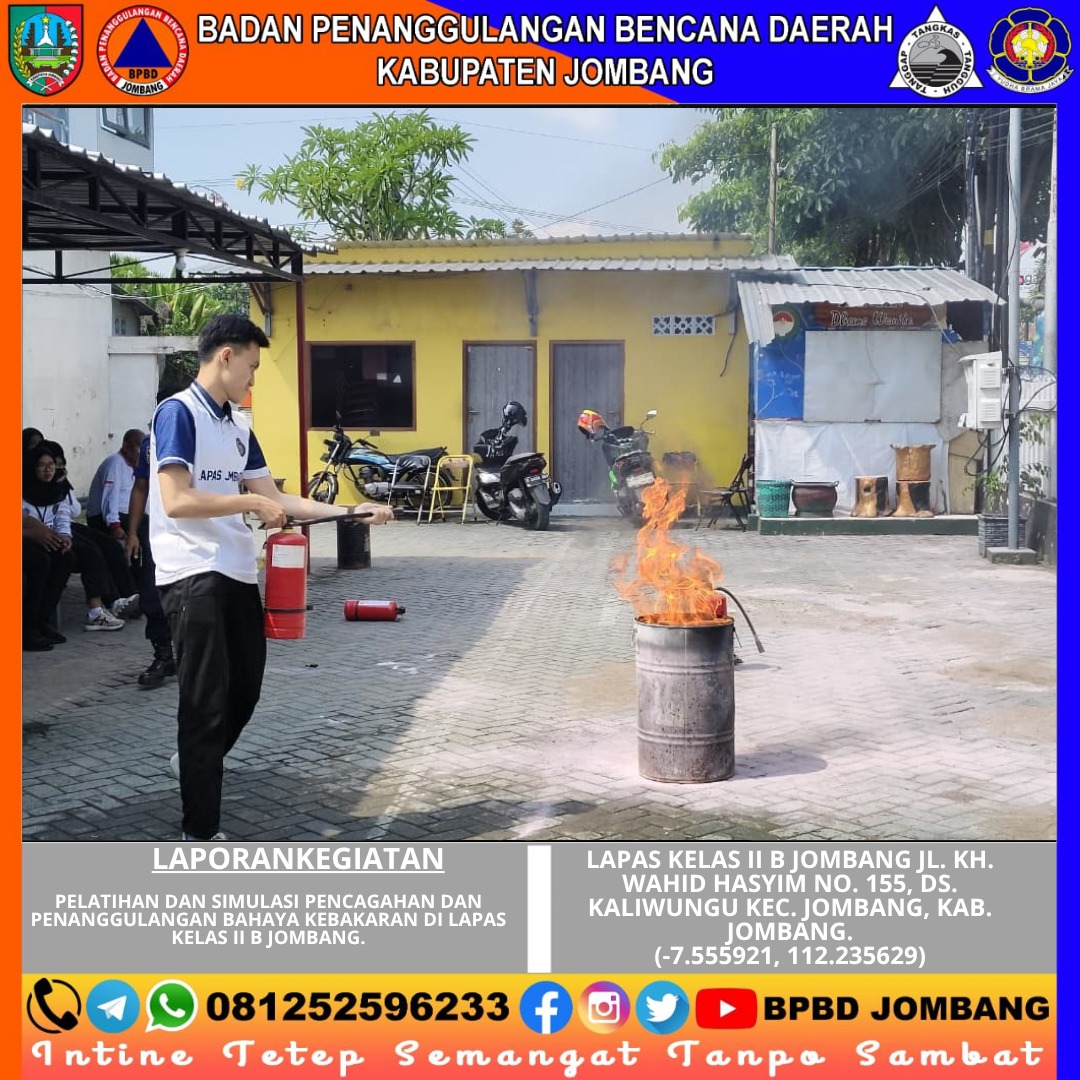 Upaya peningkatan kesiapsiagaan terhadap potensi kebakaran terus dilakukan oleh BPBD Kabupaten Jombang. Salah satunya melalui kegiatan pelatihan dan simulasi pencegahan serta penanggulangan bahaya kebakaran yang dilaksanakan di Lapas Kelas II B Jombang.