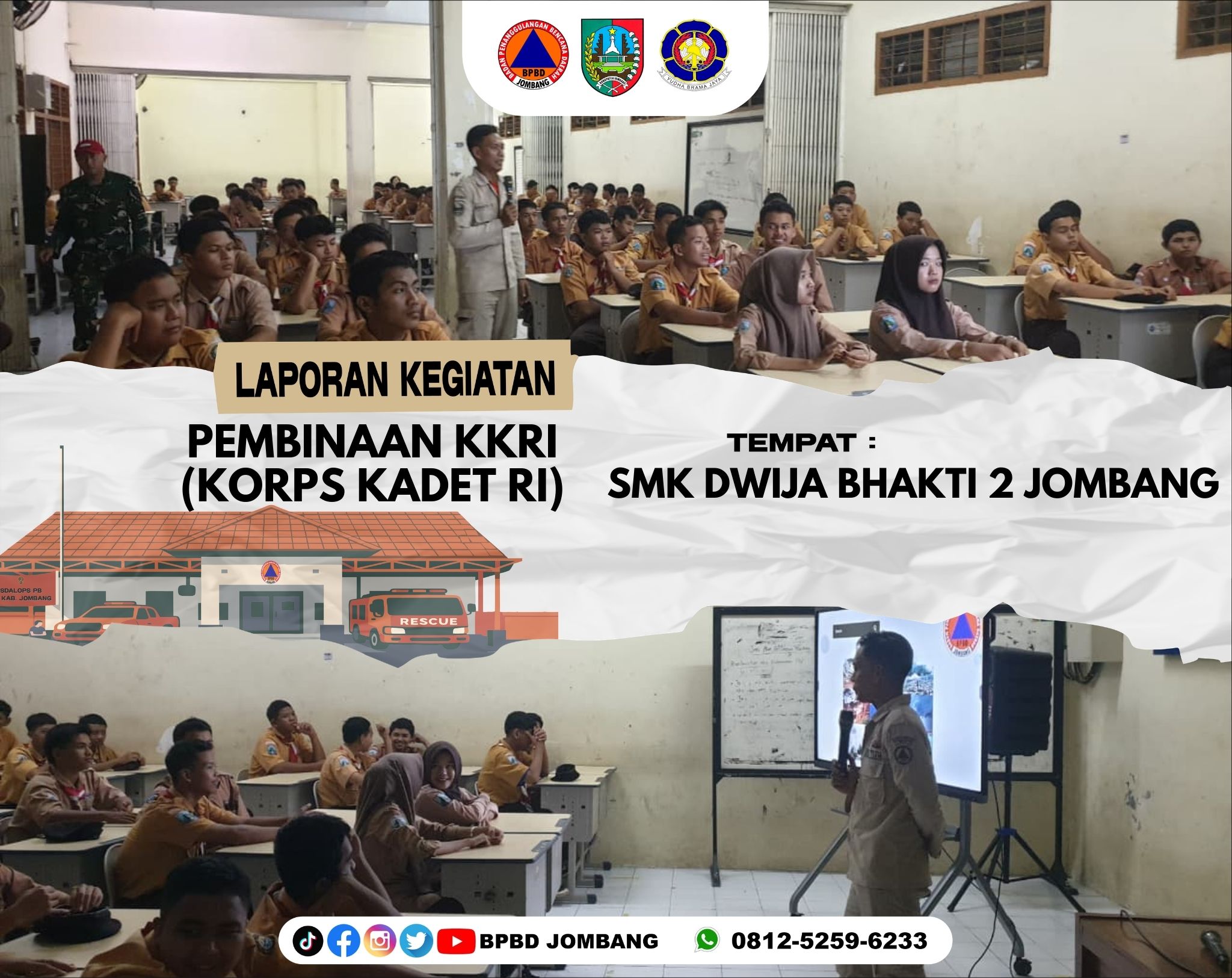 Dalam upaya membangun generasi muda yang tangguh dan siap menghadapi berbagai potensi bencana, Pusdalops BPBD Kabupaten Jombang melaksanakan kegiatan Pembinaan Korps Kadet Republik Indonesia (KKRI) di SMK Dwija Bhakti 2 pada Jumat (13/02/2026).