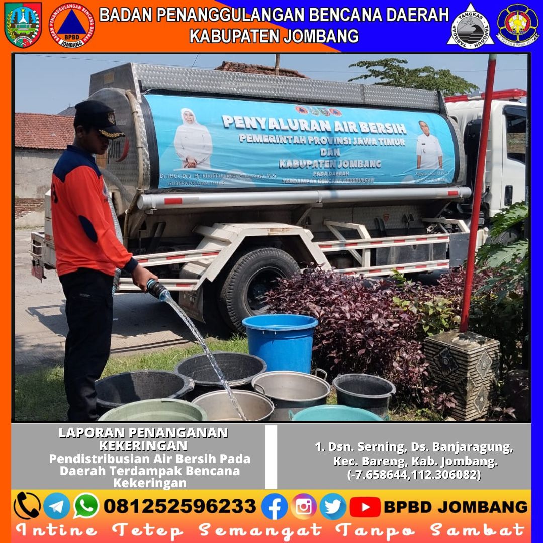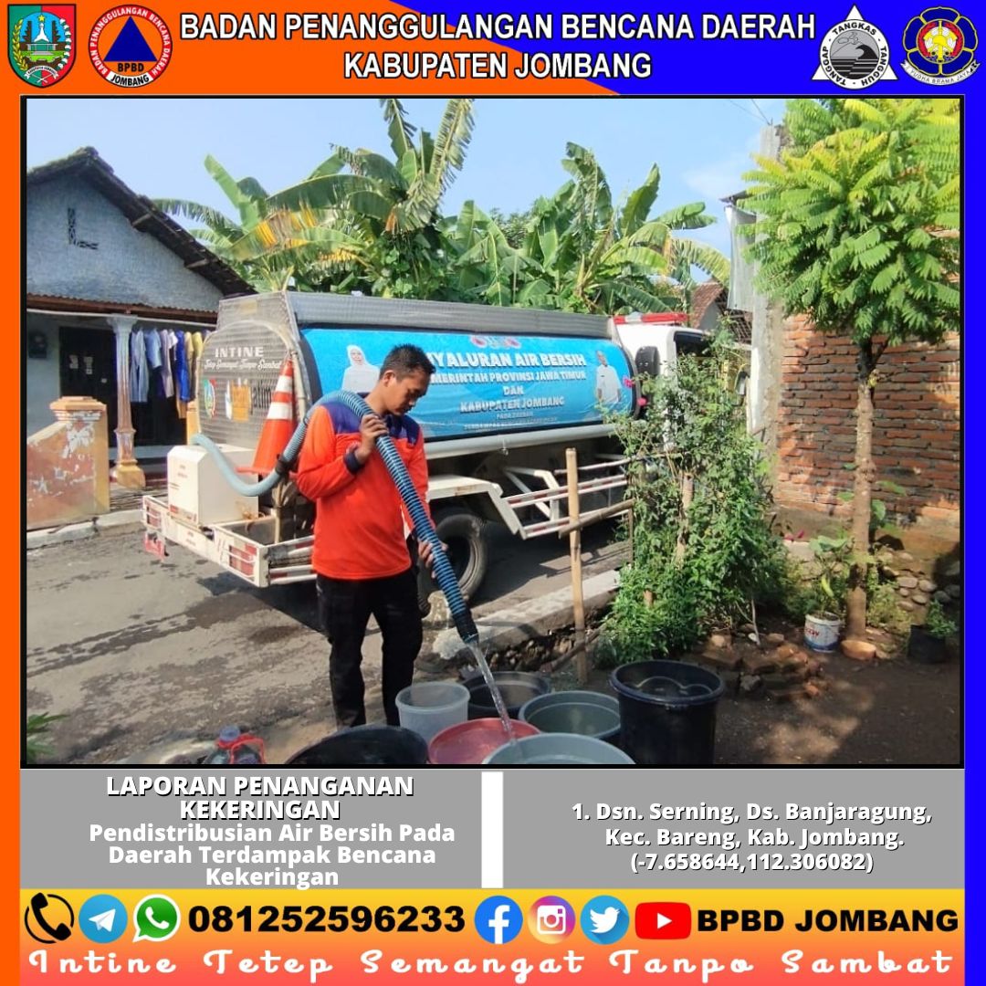 Lokasi kegiatan terletak di Dsn. Serning, Ds. Banjaragung, Kec. Bareng, Kab. Jombang dan Dsn. Karangan Kulon, Ds. Karangan, Kec. Bareng, Kab. Jombang, yang merupakan salah satu daerah yang terdampak kekeringan saat ini. Pendistribusian air bersih dilaksanakan untuk memenuhi kebutuhan air masyarakat di daerah tersebut sebagai salah satu upaya untuk menanggulangi dampak kekeringan saat ini.